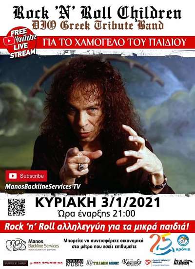 - Rock ‘N’ Roll Children την Κυριακή 3 Ιανουαρίου, θα μας προσφέρουν ένα μαραθώνιο και άκρως απολαυστικό live τους, βασισμένο στην τεράστια διαδρομή από αδαμάντινα τραγούδια που μας πρόσφερε, η για πάντα λατρεμένη φωνή του RONNIE JAMES DIO! Οι ύμνοι από τo προσωπικό του σχήμα τους Dio, αλλά και από την εμβληματική παρουσία του σε Rainbow, Black Sabbath, Heaven And Hell και Elf, θα είναι το μαγικό υλικό που θα γεμίσει αυτή την πολύ ξεχωριστή βραδιά που έχει ως σκοπό να μας διασκεδάσει, να μας ψυχαγωγήσει και κυρίως να προσφέρει βοήθεια, ελπίδα και πίστη για την ζωή, στους πιο ευάλωτους μεταξύ μας, στα μικρά παιδιά!