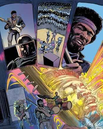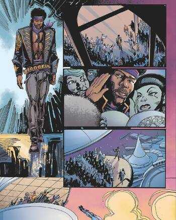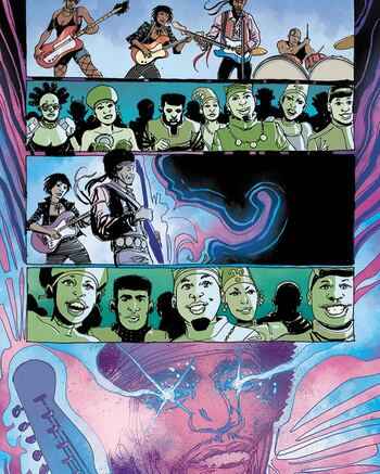 Το Jimi Hendrix: Purple Haze συνδυάζει τον κλασικό πολτό επιστημονικής φαντασίας και τον αφρο-φουτουρισμό για να δημιουργήσει μια ψυχεδελική διαστημική οδύσσεια που αποτυπώνει τη μαγεία, την ελπίδα και την εξέγερση για την οποία είναι γνωστή η θρυλική μουσική του Jimi.”